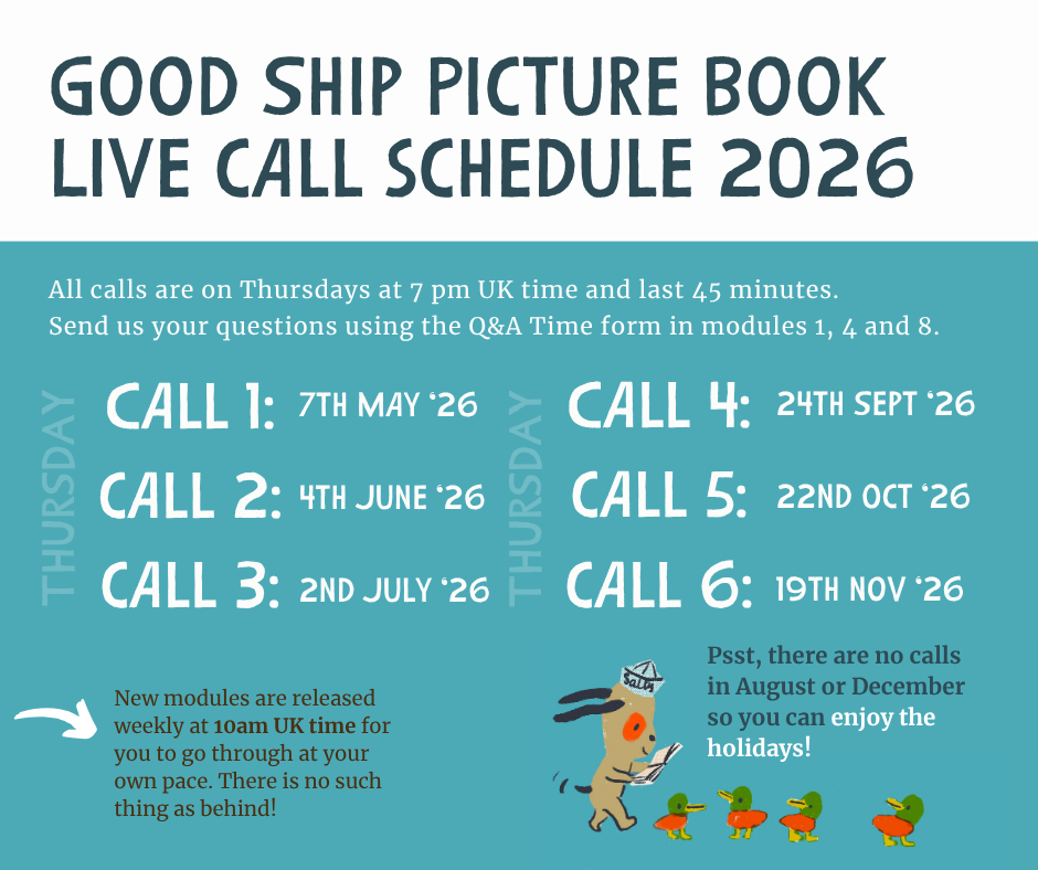 You'll also get a generous scoop of structure, guidance, encouragement and freedom to finally figure out your picture book, and to be proud of it!