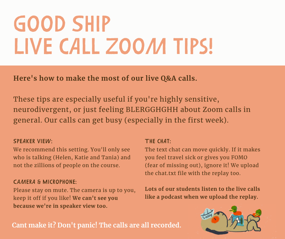And you have LIFETIME ACCESS which means you can go at your own pace, join in with all our fortnightly live co-working sessions, receive invites to Zoom calls with special guests, and get access to all the new content we make for years to come! Future you will be so happy you climbed aboard! 🥳