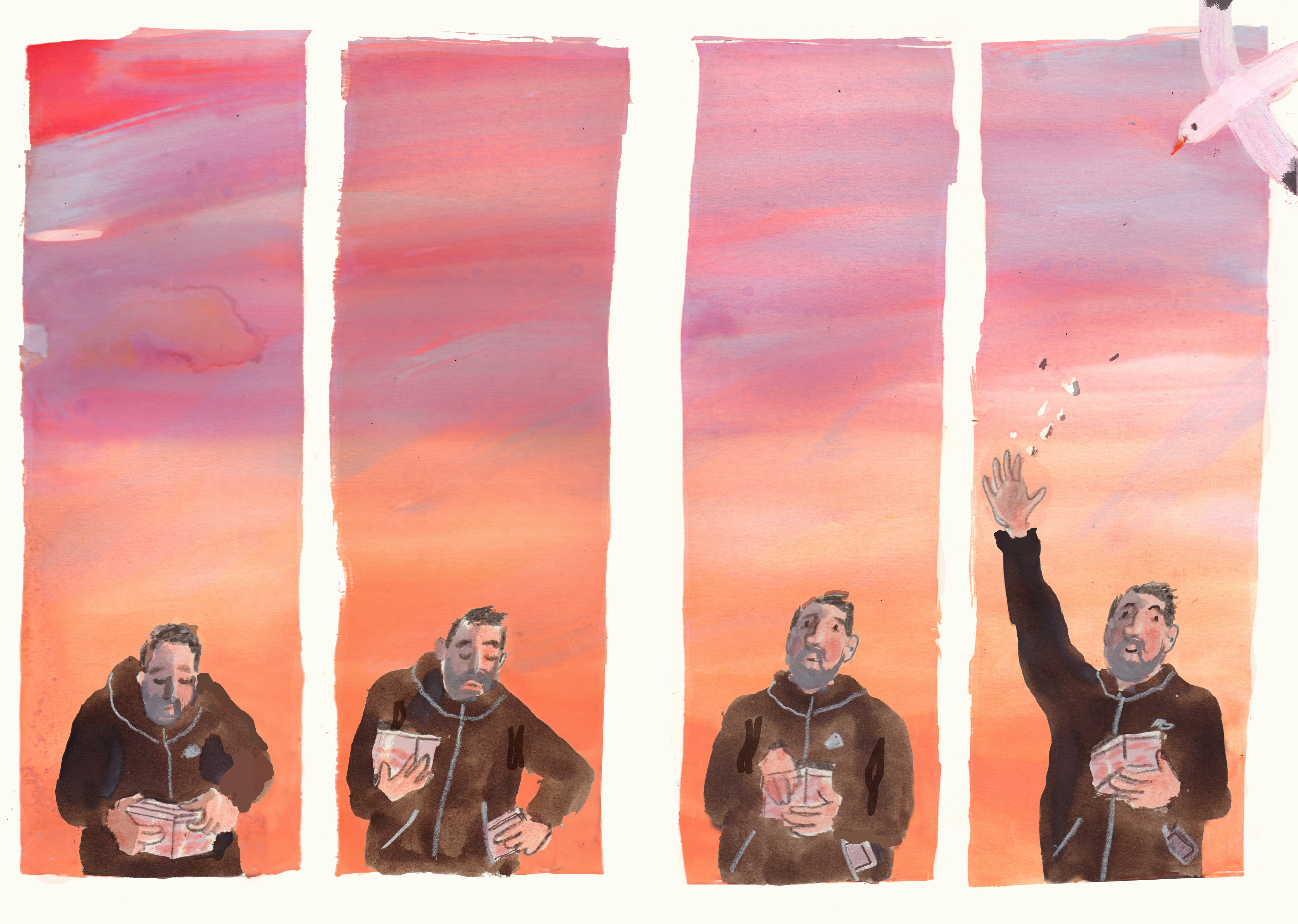 It was exciting! I was drawing all the time. I cared less about what all the other illustrators on Instagram were doing and I started to make new work that I liked, and I had a great time making it too. The following year I took part in the first round of the Picture Book course. Spurred on by that, and with plenty of encouragement from new Goodship friends, I applied for an MA in Children’s Book Illustration at Cambridge School of Art, I created this set of images during my first year of the MA. In 2025 I’ll be in Bologna with some of the books that I’ve produced on the course. I’ll always be grateful to Helen, Katie and Tania for helping me find my creative way again, they absolutely changed my life!"
