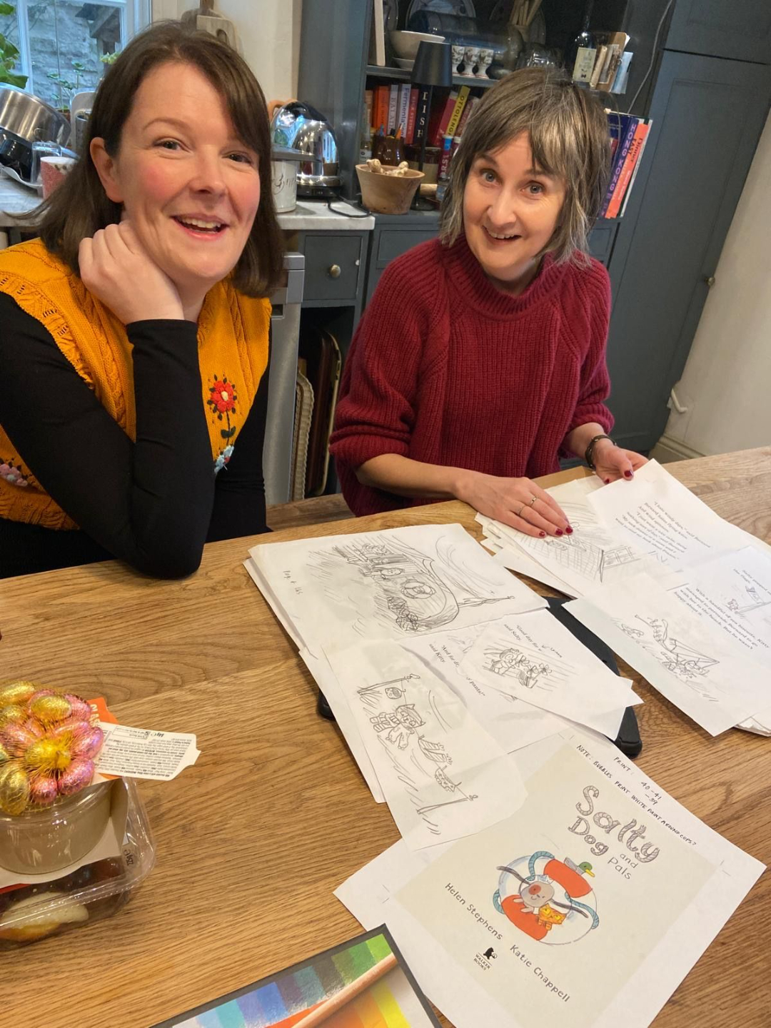- How Helen and Katie wrote the stories together at Helenâs kitchen table - on two iPads, one Google doc, a load of layout paper and sticky tape